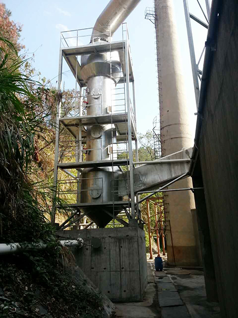 不銹鋼脫硫塔、干式導流管除塵器及自動加藥設備。